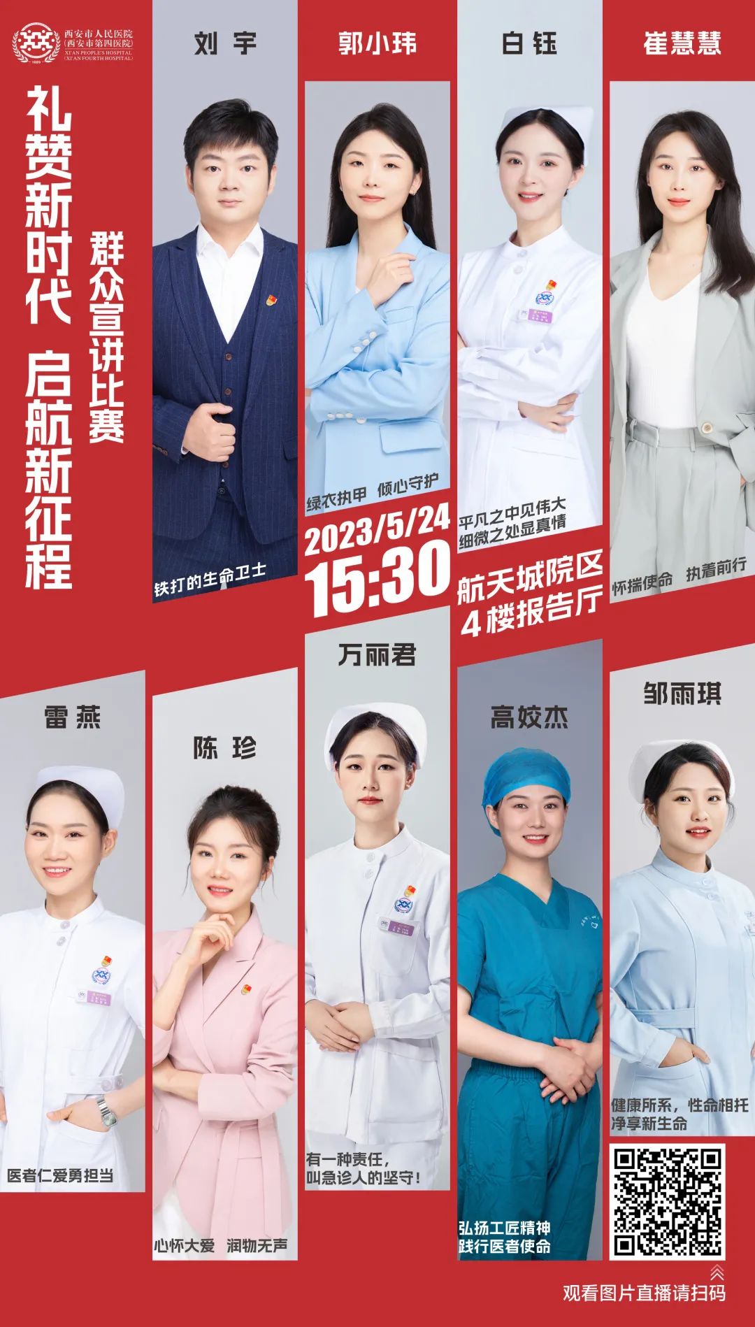 为全面深入学习贯彻党的二十大精神,凝聚奋进新征程、建功新时代的强大精神力量。西安市人民医院(西安市第四医院)于5月24日(周三)下午3点30分,在航天城院区4楼报告厅举行“礼赞新时代、启航新征程”群众宣讲比赛活动。