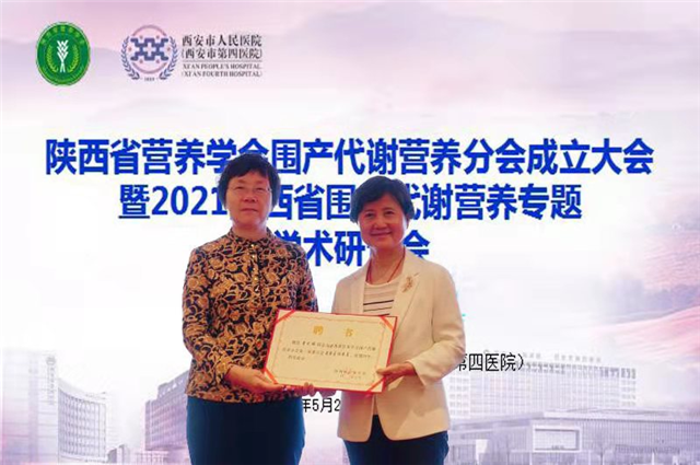 陕西省营养学会理事长张瑞娟教授宣布西安市人民医院·西安市第四医院为主委单位,并为围产代谢营养分会授牌致辞。