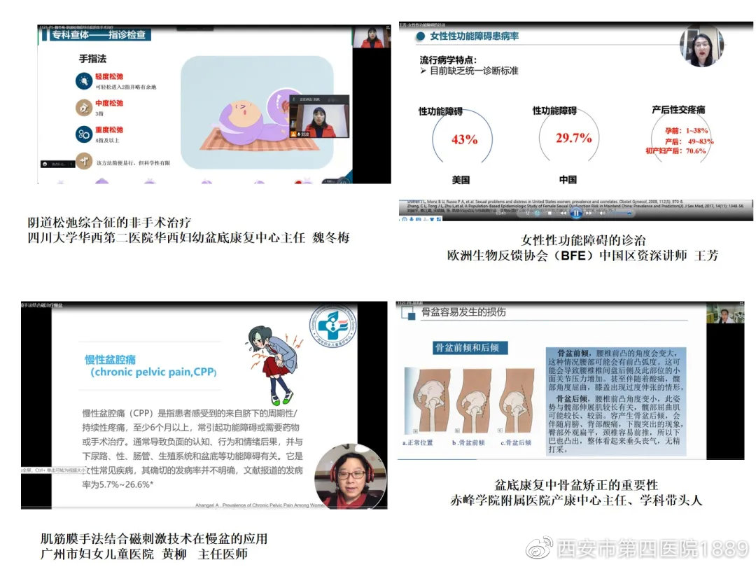 特邀了Peter Papa Petros院士、西安市人民医院张欣文主任、西安市人民医院·西安市第四医院产后康复中心李丹副主任、郑州大学附属郑州中心医院妇科二病区李红娟主任、四川大学华西第二医院华西妇幼盆底康复中心魏冬梅主任、广州市妇女儿童医院黄柳主任、赤峰学院附属医院产康中心胡美超主任、欧洲生物反馈协会(BFE)中国区资深讲师王芳博士,围绕盆底整体理论、盆底功能障碍诊治、阴道松弛、骨盆矫正等盆底康复与生殖健康主题进行了精彩讲授。