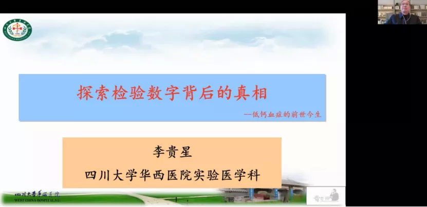 四川大学华西医院医学检验科李贵星教授讲授了“探索检验数字背后的真相-低钙血症的前生今世”。李老师用生动的案例和思考分享了多年的工作积累,如何做到从“发报告”到“出报告”,如何让检验回归临床,发挥检验人的智慧,在每天的日常工作中体现检验的价值,从而帮助到患者。
