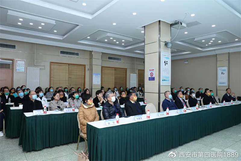 西安市人民医院·西安市第四医院院长李兴洲,总会计师马瑞萍,副院长李建平、李斌、吕雅丽、薛刚,院办主任闵慧,眼科医院院长严宏,名誉院长王润生、刘建国,眼科医院副院长李少武、马波、张妍春、王海燕,眼科医院职能部门、各中心主任、带组医师等出席会议。