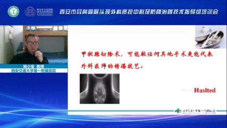 首都医科大学附属北京同仁医院房居高教授、中国人民解放军总医院李进让教授、西安交通大学第二附属医院任晓勇教授、四川大学华西医院杨慧教授、北京大学第三医院田彦杰教授、西安市人民医院罗家胜教授、西安交通大学第一附属医院姚小宝教授分别就喉癌精准诊疗体系建议及应用、肉毒素注射在喉科疾病中的应用、儿童OSAHS的诊治策略、咽喉嗓音疾病中的内镜技术、阻塞性泪道疾病的诊治、喉气管狭手术方式选择、甲状腺的手术方式,进行了精彩的授课。