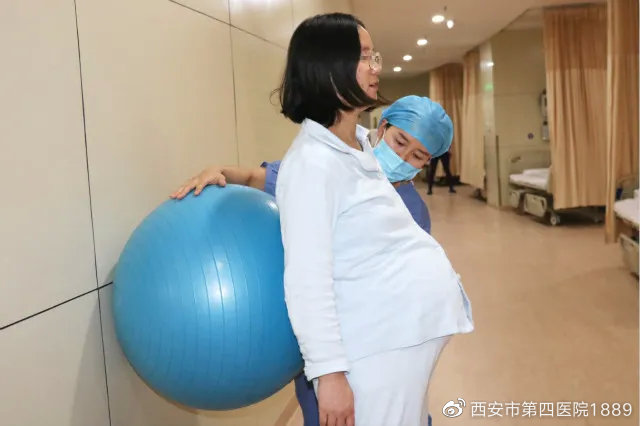 助产士扶我下床活动,我趴在她的肩上,双臂环抱住她的脖颈,伴随着音乐轻轻下蹲,打开双跨,做好一切准备迎接宝宝到来!这场景回想起来很是美好。