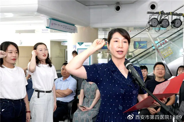 一声声慷慨激昂的宣誓词就像一个个鼓点,敲打在在场每个人的心上,在新门诊大厅的上空久久回响。声声呐喊仿佛无形中赐予每个新员工坚毅的力量,坚决捍卫这份誓言。