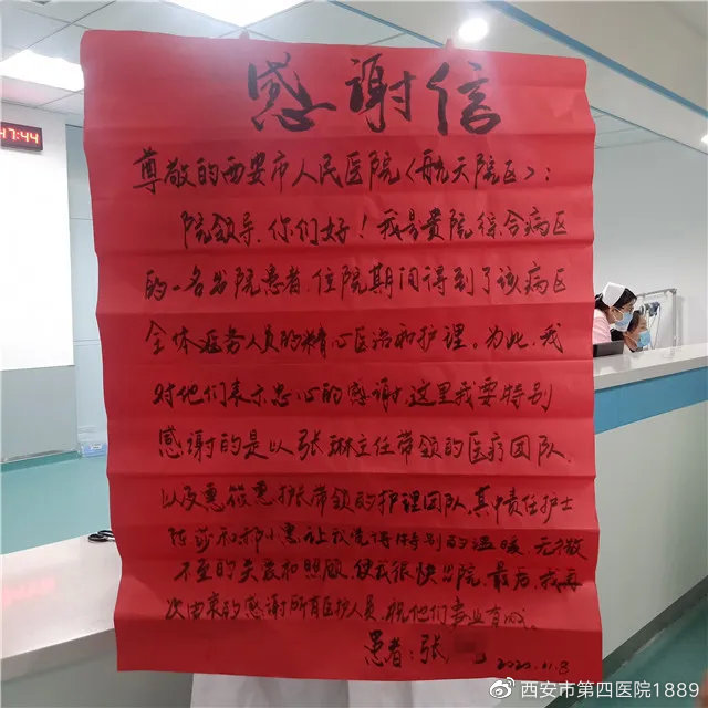 这张空白的红纸上,虽然一开始没有一个字,但是它承载了患者的千金谢意。在脑科病院医护团队的心里,早已把浓浓的谢意收下了,为了了却大爷的心愿,也在他们的帮助下,根据大爷的复述,填满了这张空白的红纸!