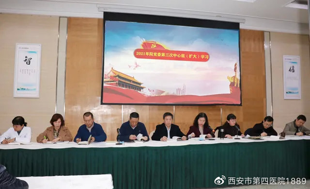3月10日下午,西安市人民医院(西安市第四医院)两院区召开院党委理论中心组学习扩大会议,领导班子成员、职能科室主任和各支部书记参会。会议由院党委书记叶连红主持,总会计师马瑞萍首先领学了《论中国共产党历史》一书中重点篇章,随后参会人员共同学习了国家卫生健康建设的相关政策。