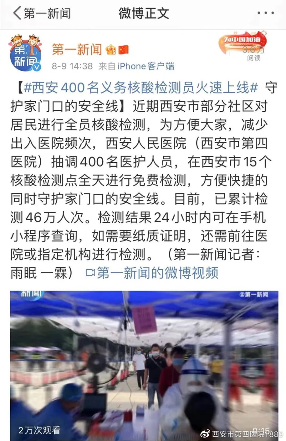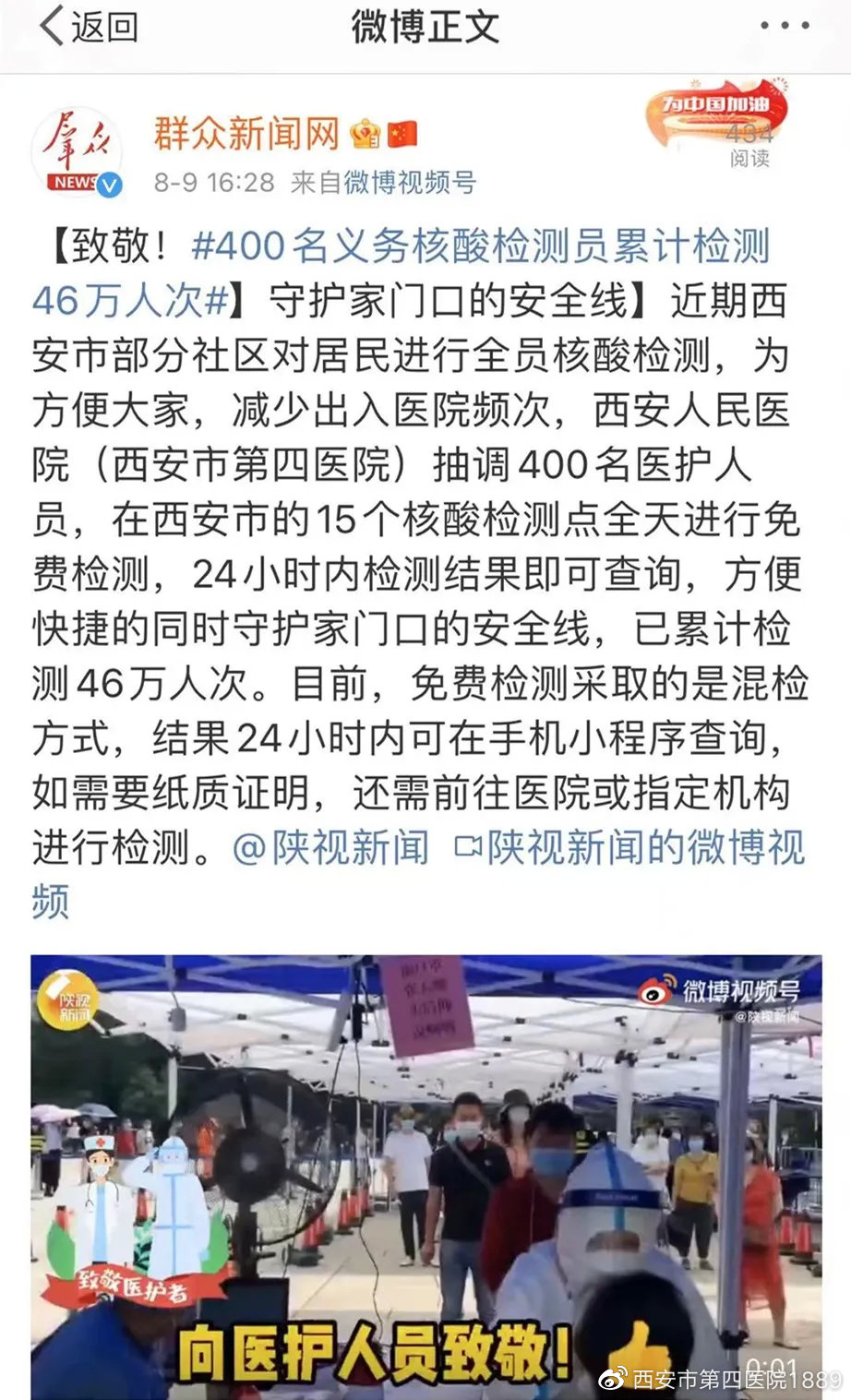 他们顶着闷热的天气、穿着层层密不透气的防护服,分布在航天和曲江新区的15个核酸检测点,全天候为广大百姓进行免费检测。并且,上了秋天的第一个热搜……