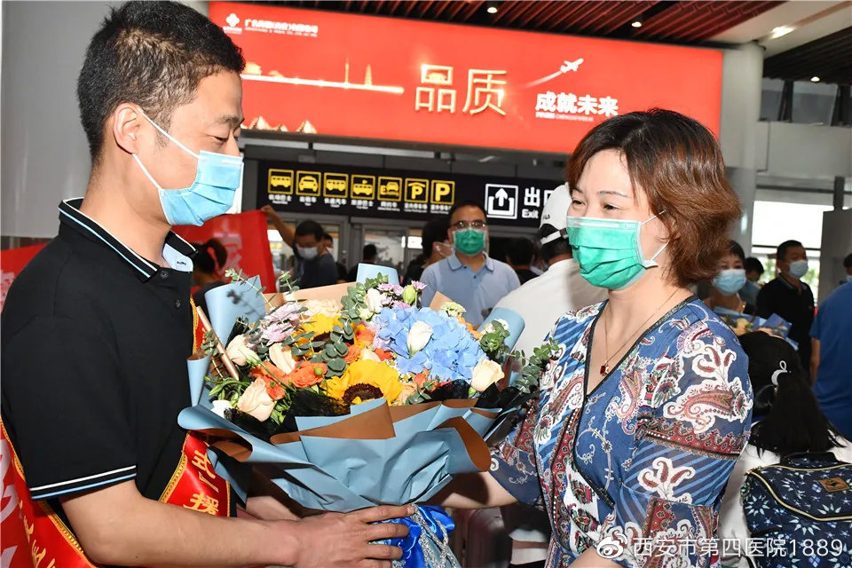 “快看,屈超义、李晗”接机人员激动地喊着他们的名字,为他们感到骄傲和自豪的泪水夺眶而出;副院长吕雅丽紧紧握着他们的双手,送上了最诚挚的问候和祝福。