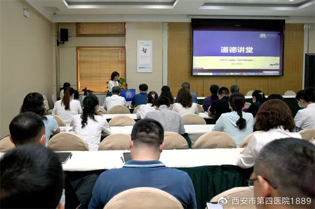 为深入学习贯彻习近平总书记关于注重家庭家教家风建设重要论述,引导党员干部修身正德、律己守廉,以良好家风助推全面从严治党向纵深发展,9月1日,西安市人民医院·西安市第四医院举办了“德润三秦”家风建设经典家训品读之主题道德讲堂活动,通过学一次党史、唱一首歌曲、看一部短片、诵一段家风、悟一番思想、送一份吉祥引导党员干部修身正德、律己守廉,以好家风促进作风建设、涵养党风政风,营造风清气正的良好氛围。