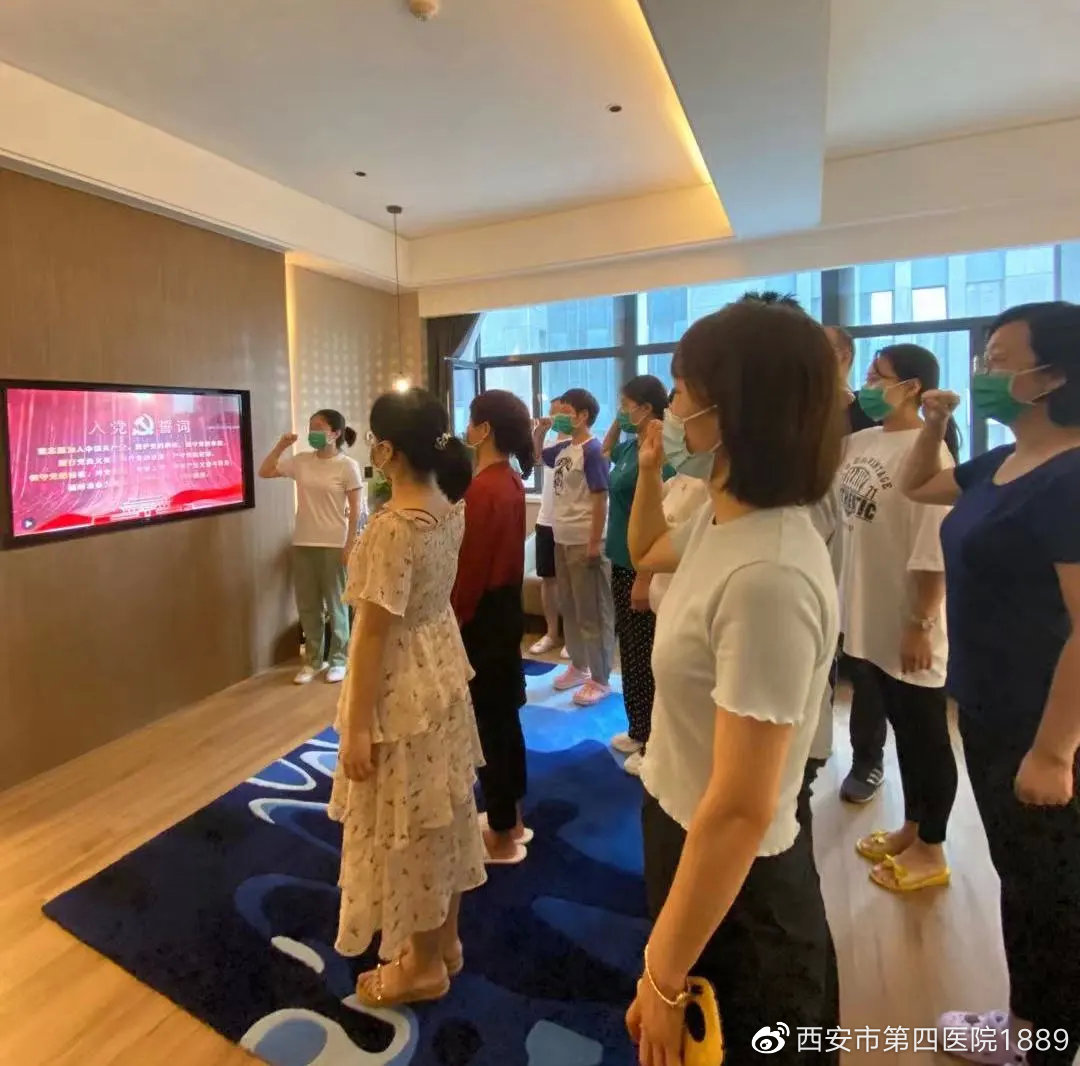 中共西安市第四医院委员会十四运医疗保障队临时党支部于2021年8月27日成立,支部书记由阴俊担任,其中正式党员15人,预备党员1人,党支部的任务就是宣传和执行党的路线、方针、政策和执行党中央、上级组织和本组织的决议,充分发挥党员的先锋模范作用,团结、组织党内外的干部和群众,保证完成十四运开幕式医疗保障任务。