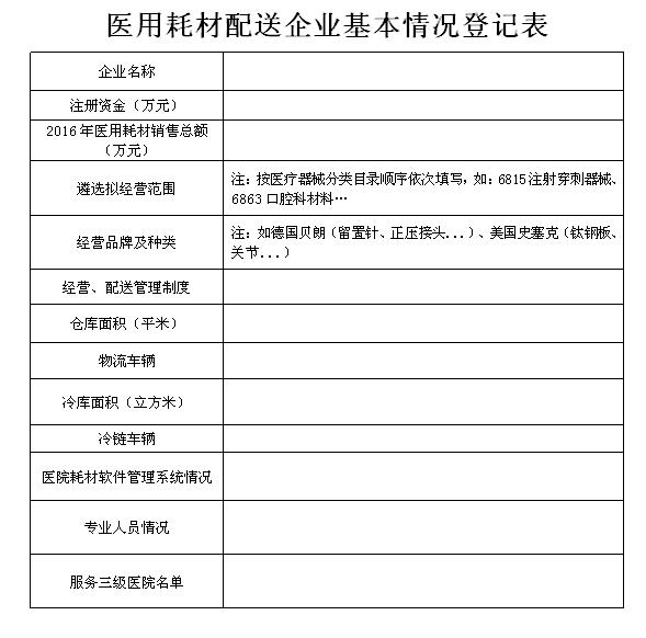 1、独立法人配送企业参加遴选的申请及《医用耗材配送企业基本情况登记表》(见附件)(法人签字、加盖企业公章);