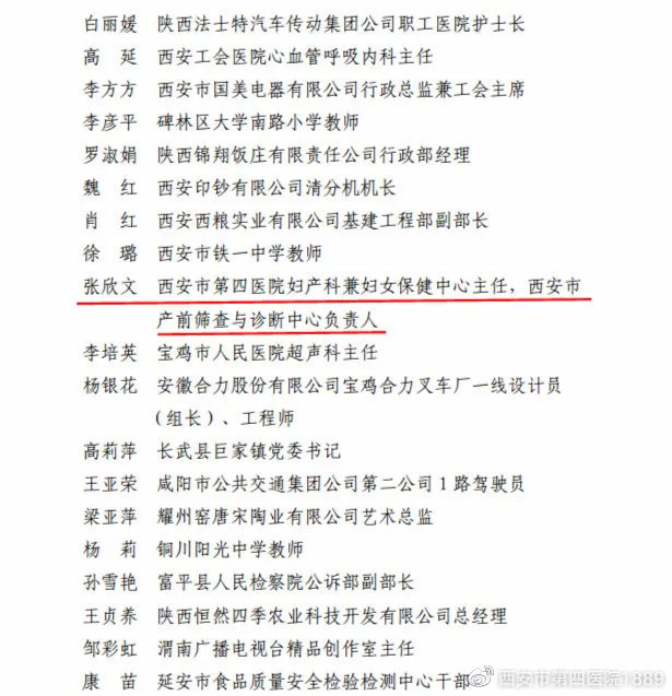 近日,陕西省总工会女职工委员会表彰了2020年陕西省先进女职工集体和个人,西安市妇产医院西安市第四医院妇产病院院长张欣文榜上有名,荣获“陕西省五一巾帼标兵”荣誉称号。