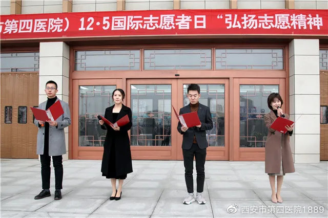 12月5日是国际志愿者日,为营造良好的社会文明新风尚,引导广大职工立足新时代、展现新作为,让志愿服务引领医院精神文明建设和医疗事业发展进入良性发展的快车道,西安市人民医院(西安市第四医院)在第35个国际志愿者日来临之际,开展了主题为“弘扬志愿精神 争做志愿先锋”的国际志愿者日主题活动,启动仪式在航天城院区举行,由党委书记叶连红主持。