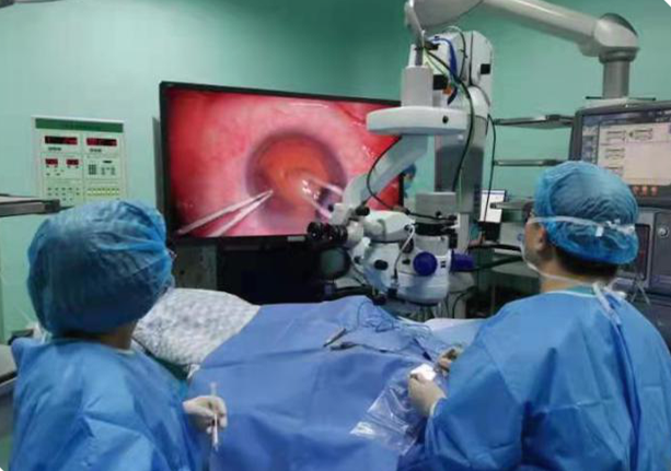 在麻醉与围手术中心雷霆医生、冀玲医生、杨阁医生及手术室王雪娟护士的协助下,孙文涛主任医师凭借自己精湛的手术技巧,按照既定的手术方案,剥除了黄斑区视网膜内界膜,同时考虑患者黄斑裂孔较大,术中果断地把内界膜填塞于黄斑裂孔处,从而恢复了解剖结构,手术顺利完成。术后患者恢复良好,无不适。