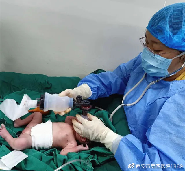 胎盘早剥是产科严重并发症,一旦发生对母胎影响极大,可造成胎儿窘迫、胎死宫内、母亲弥漫性血管内凝血(DIC)、失血性休克、急性肾衰竭、羊水栓塞等。病情就是命令,时间就是生命,在产妇剖宫产手术中只见宫腔内血性羊水、大量血凝块,胎儿娩出时只有微弱的呼吸,薛茹立刻用准备好的复苏物品清理口鼻血性液体、开始正压通气,不到一分钟宝宝发出了嘹亮的哭声。